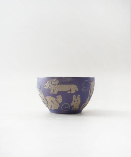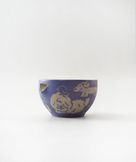 Niiliving Pottery – “In This Universe 4.0” Matcha Bowl Series: Where Dogs and Birds Play (Purple) Inverse Sgraffito A