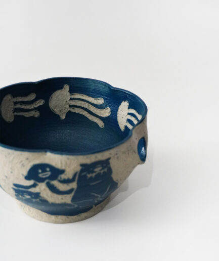 Niiliving Pottery – “In This Universe 4.0” Matcha Bowl Series: Where Dogs and Birds Play (Dark Navy Blue)