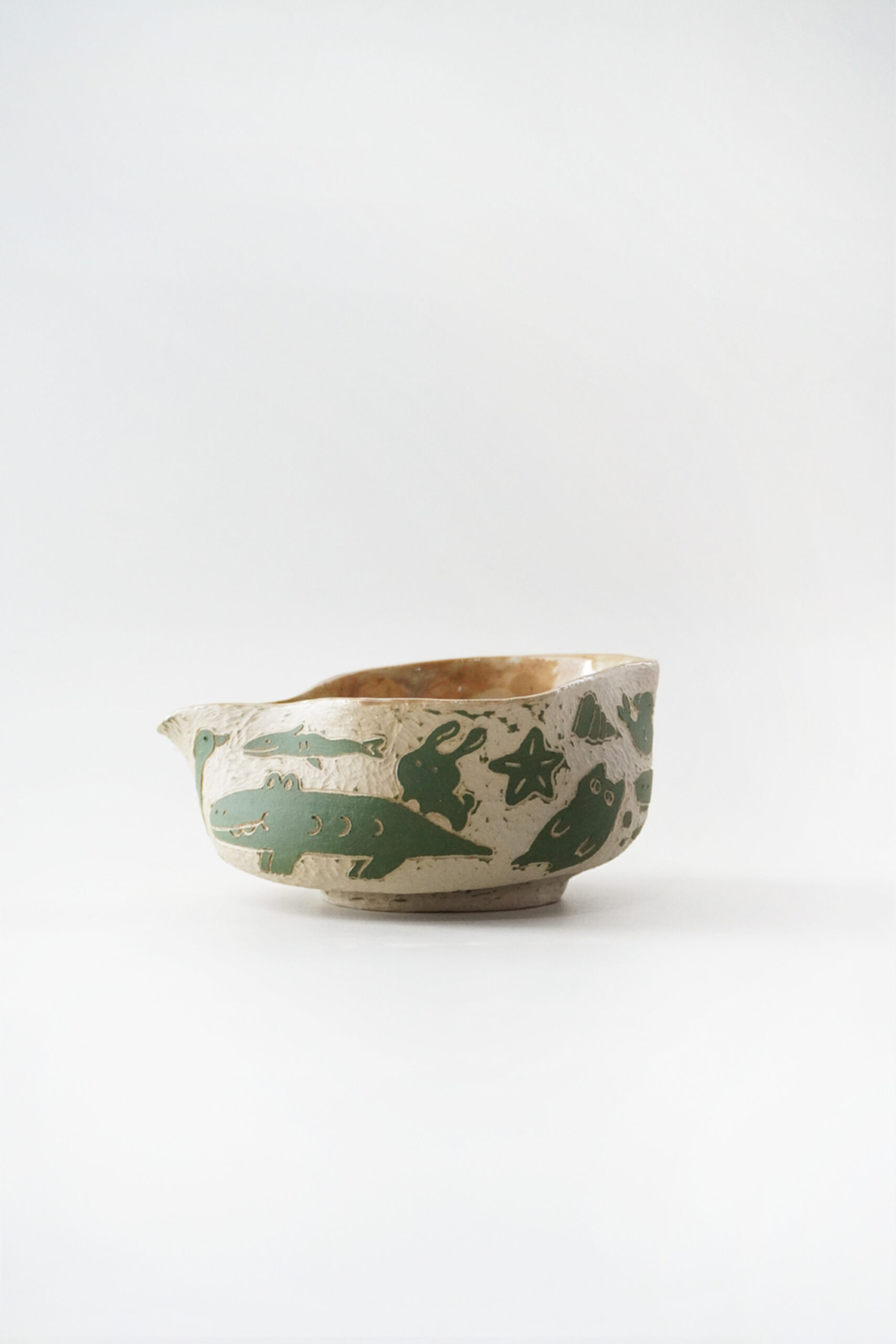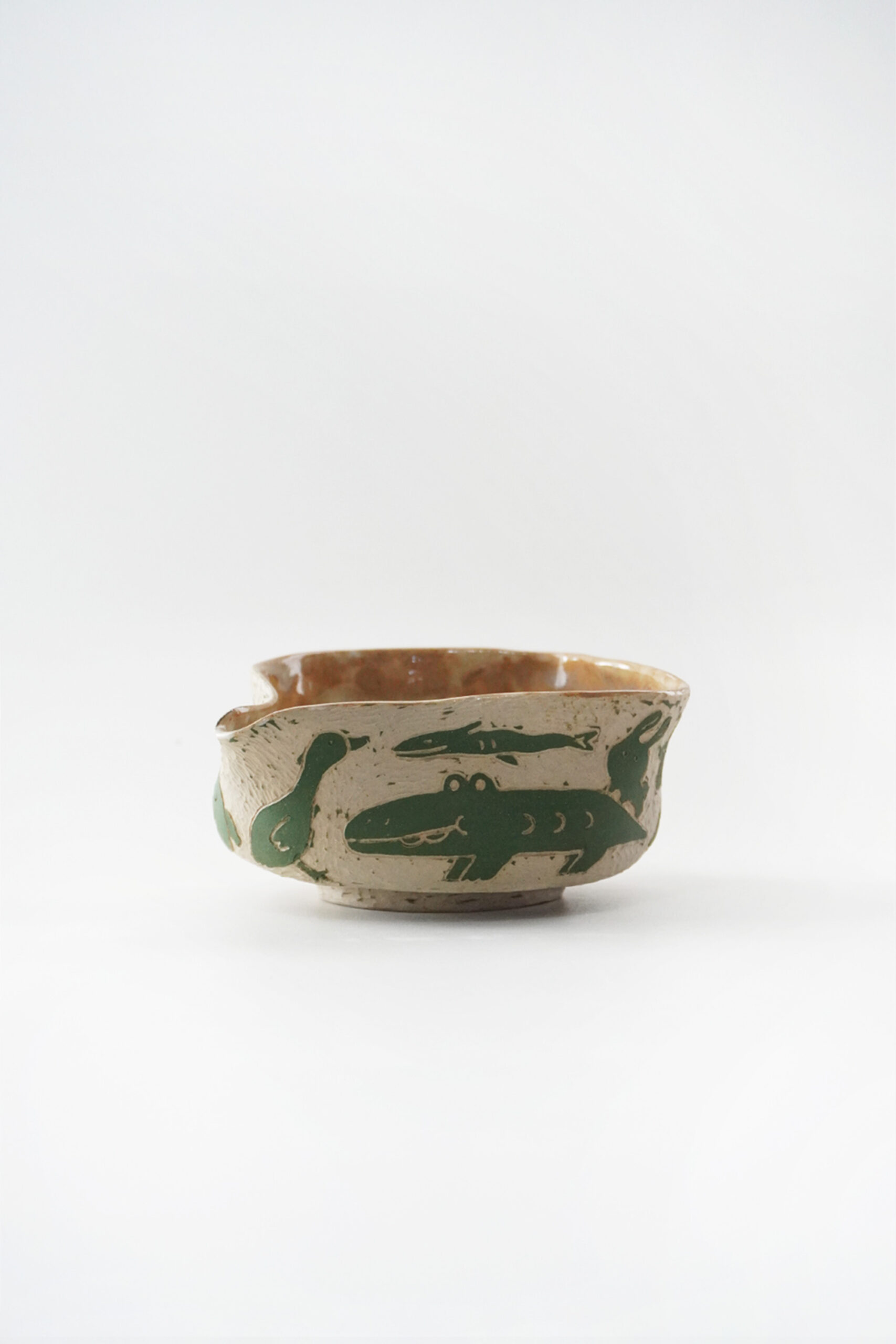 Niiliving Pottery – “In This Universe 4.0” Matcha Bowl Series: Just Everything With Croco as Main Character (Green) B