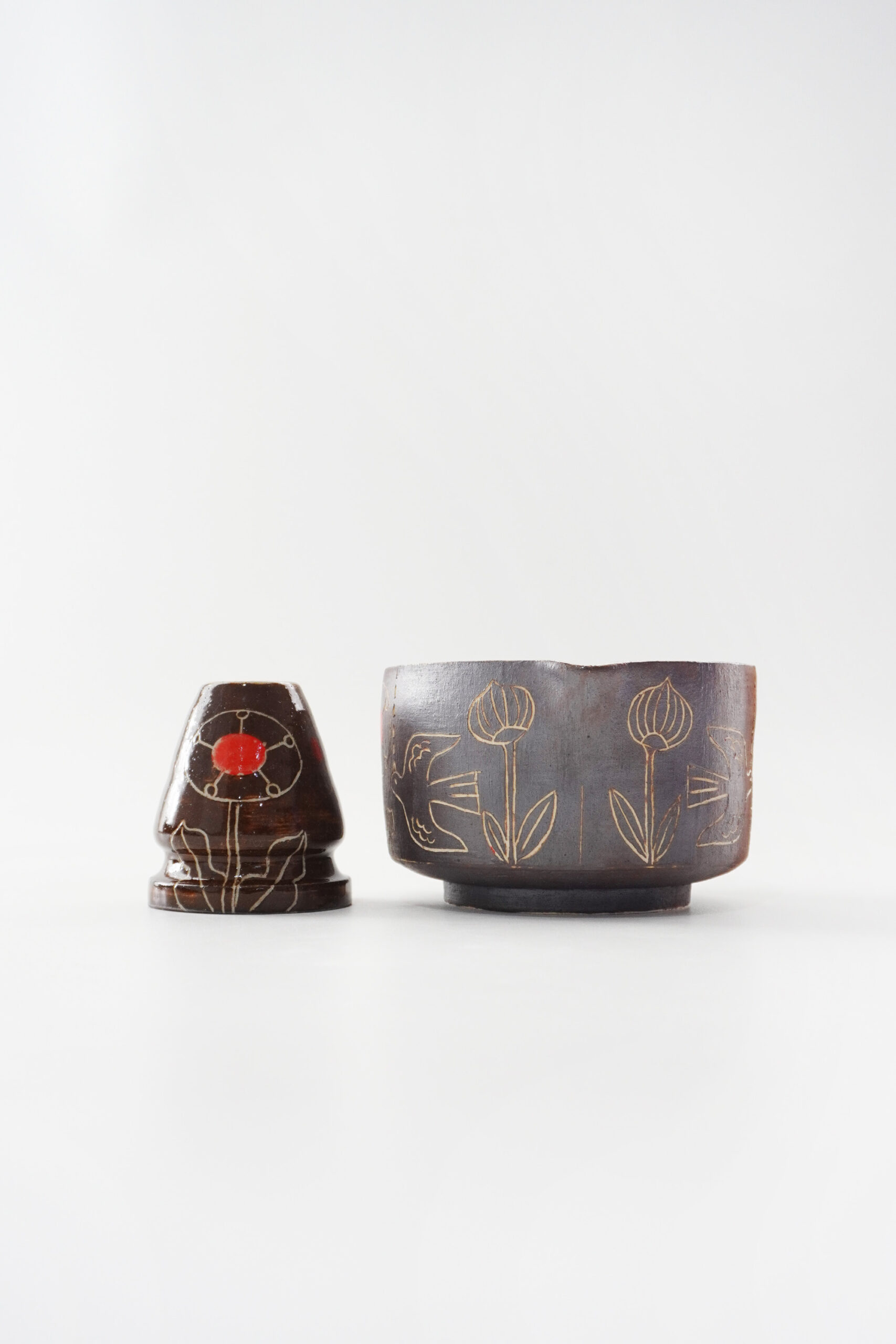 Niiliving Pottery x Mariskha – Matcha Bowl & Chasen Holder Tori to Hana Version A